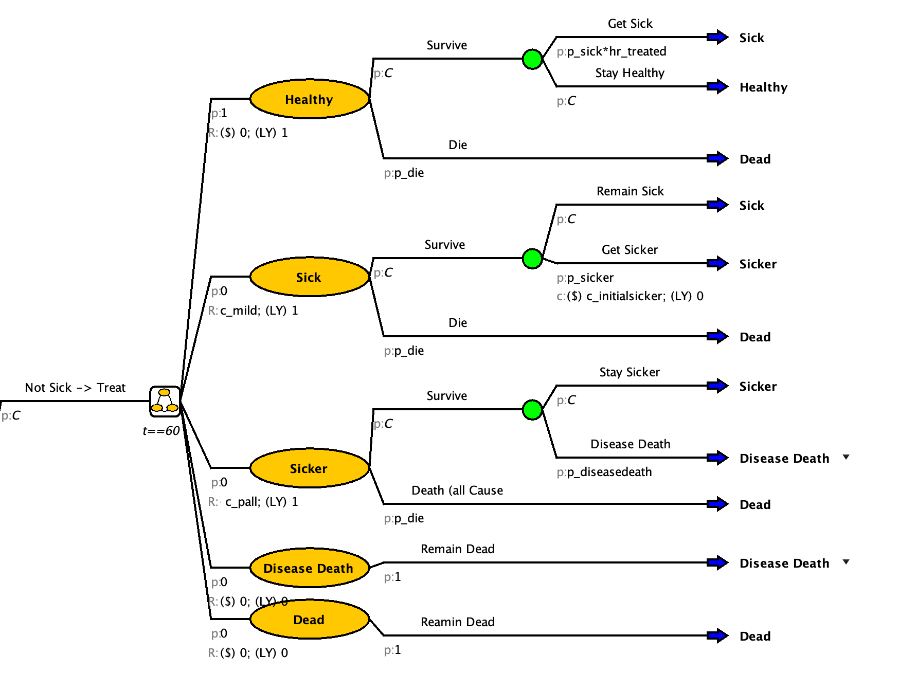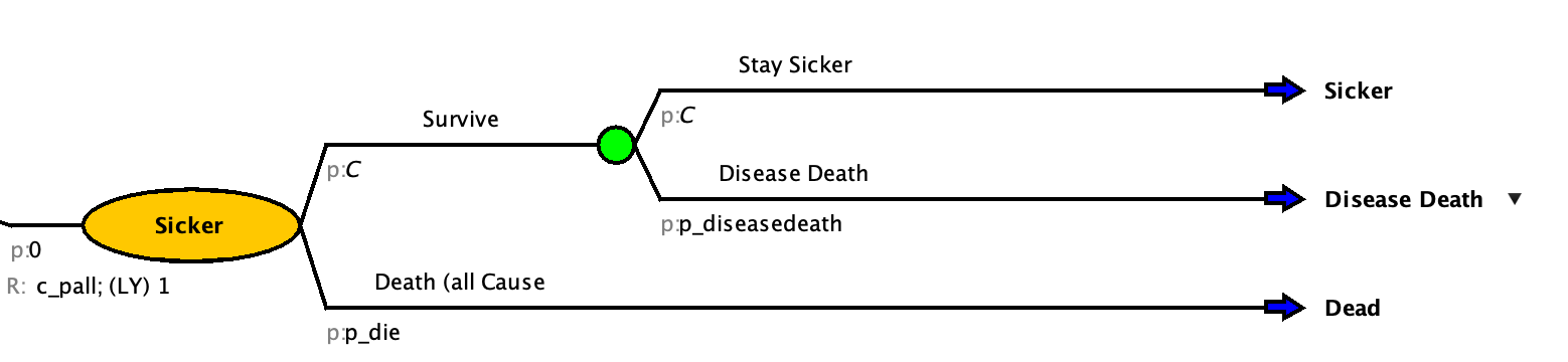 - Create a “Disease Death” state from the markov node