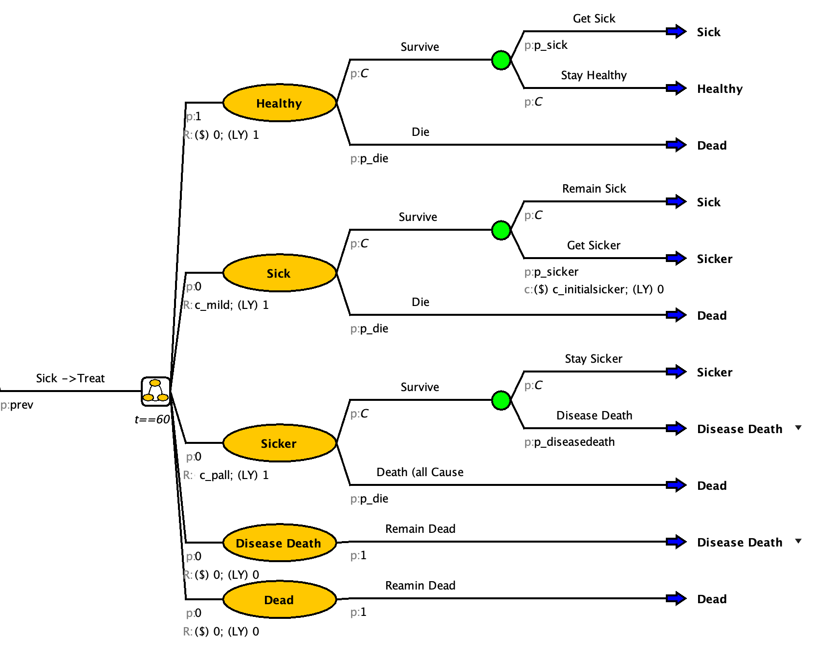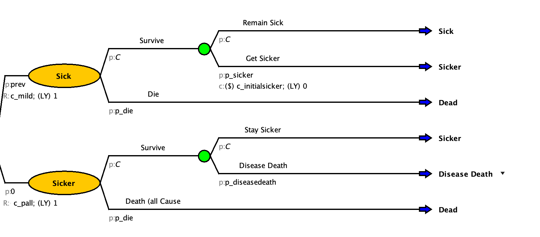 | c_initialsicker | $50,000 | One-time cost between mild and progression |