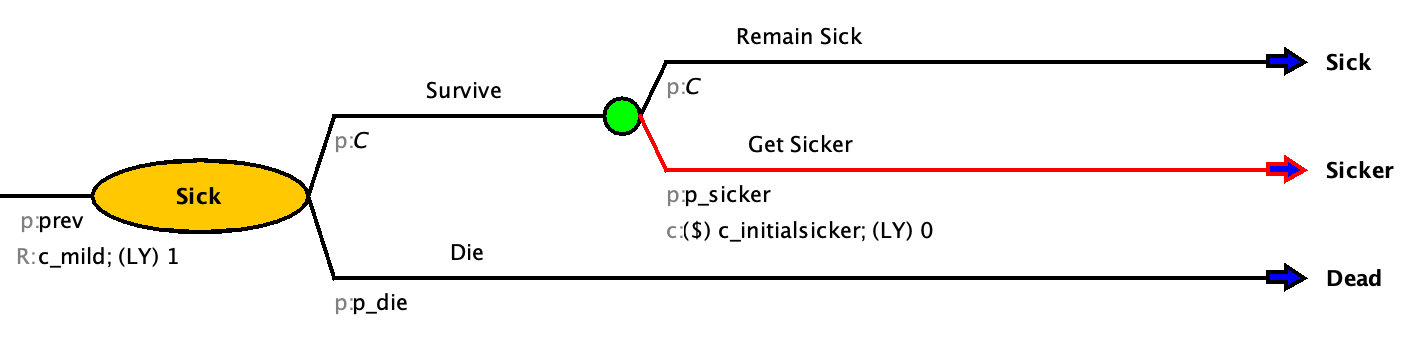 | p_sicker | 0.12 | Annual probability of getting sicker from a mild case of Disease X |