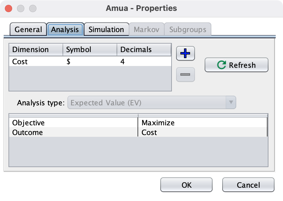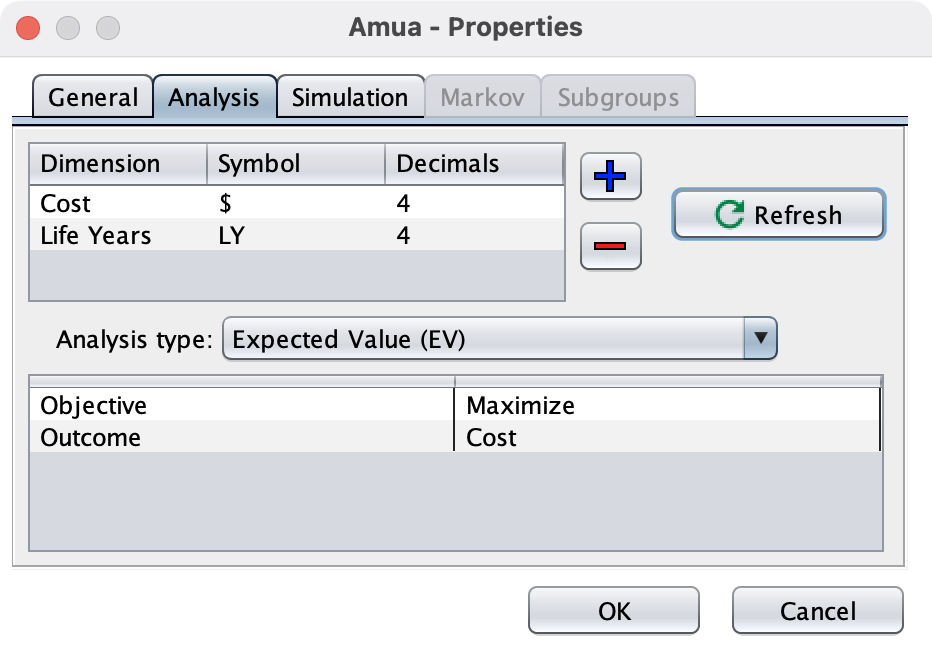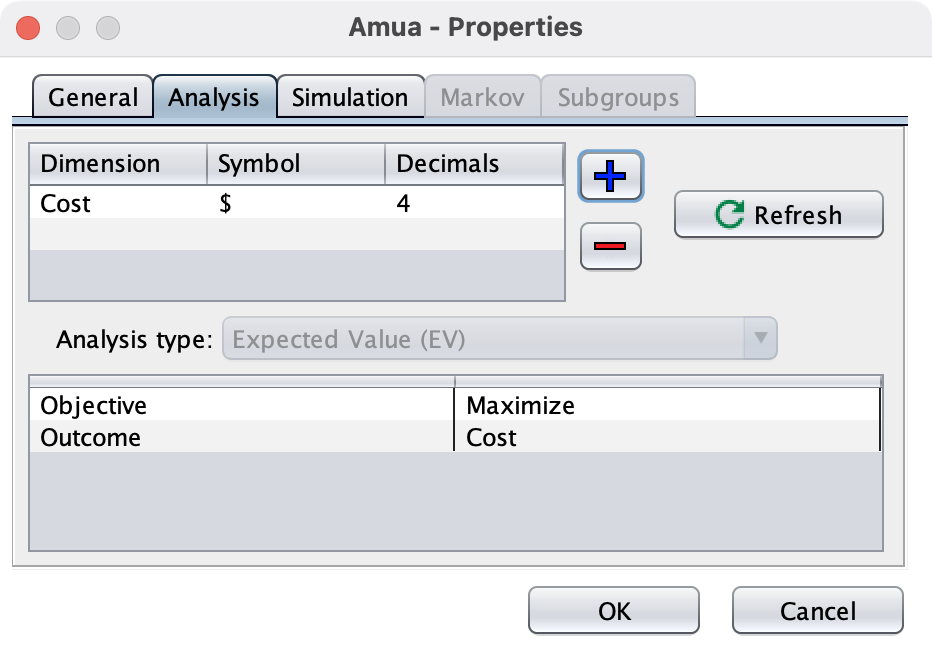 Add a “Dimension” [the name of the variable], a “Symbol” [how you want it to show in the model], and the “Decimals” [number of decimal places you want to show].
