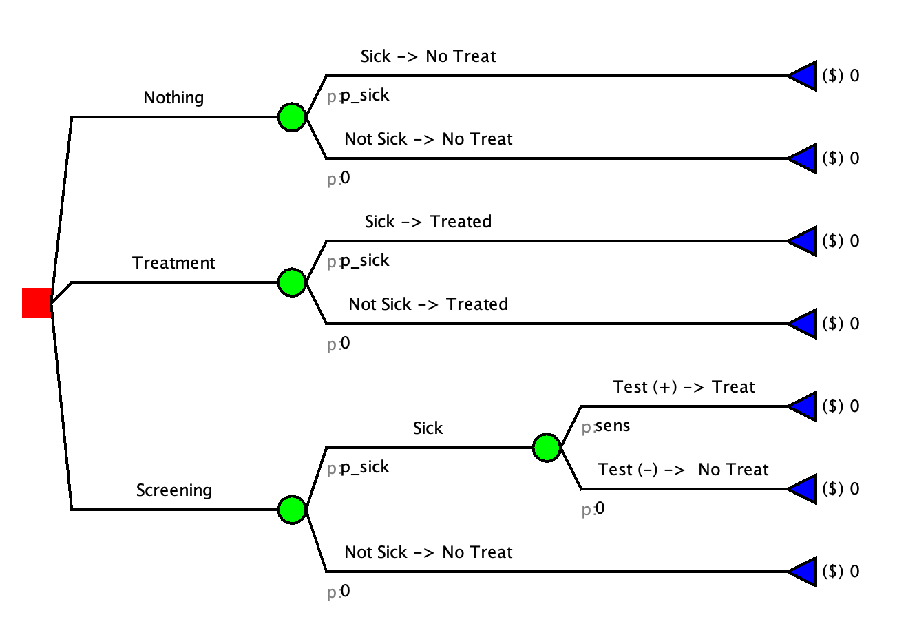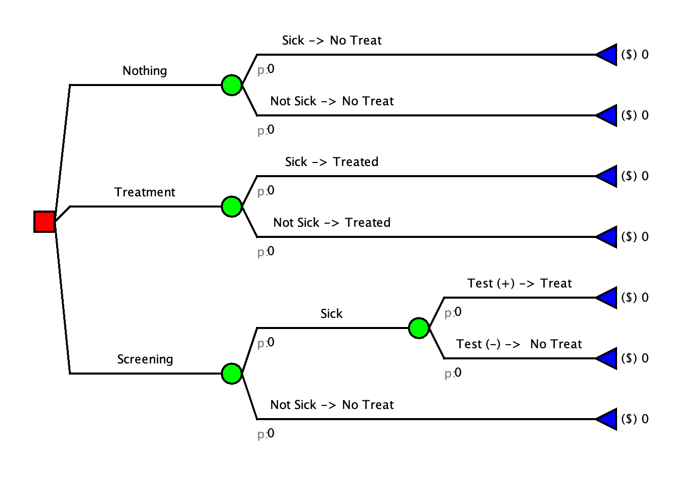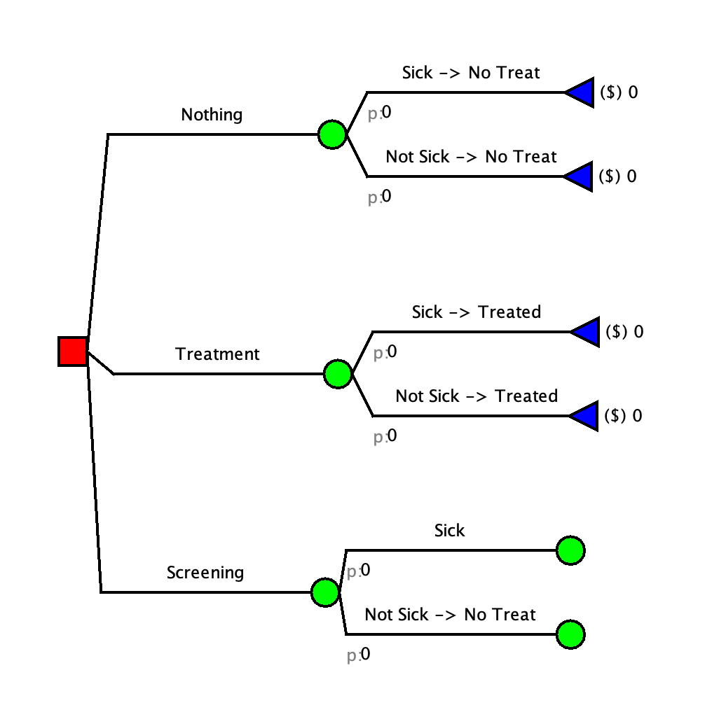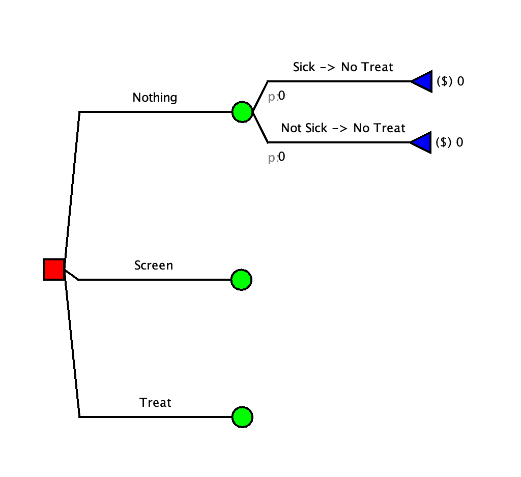 You need to build a branch for each of these. Although the screening happens first, it is typically easier to model the illness status first. The decision tree does not need to be in chronological order (aka it does not need to follow the order that things take place in real life).