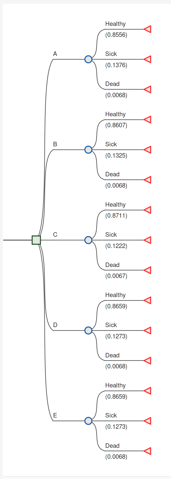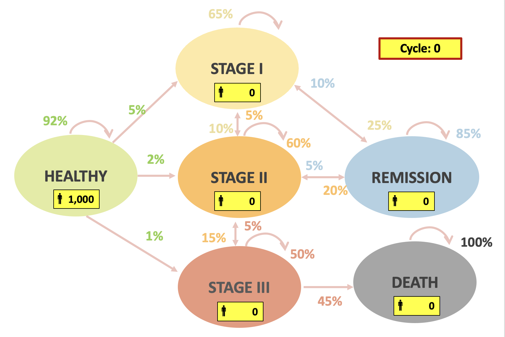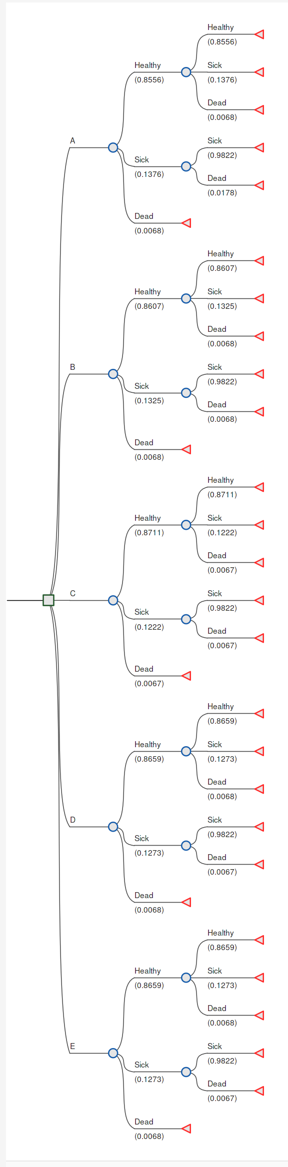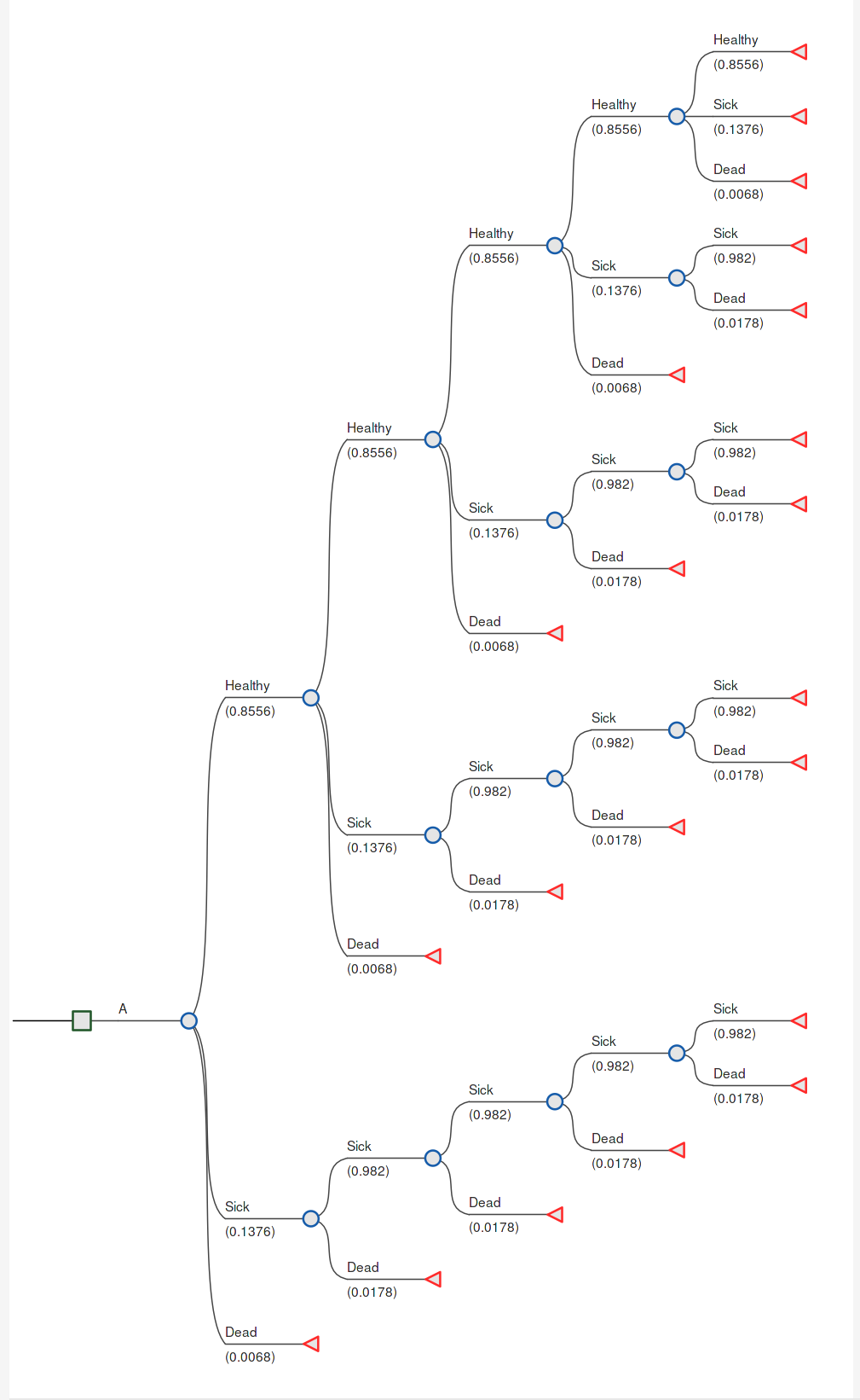 | Cycle | Healthy | Sick | Dead | LY (single cycle) |